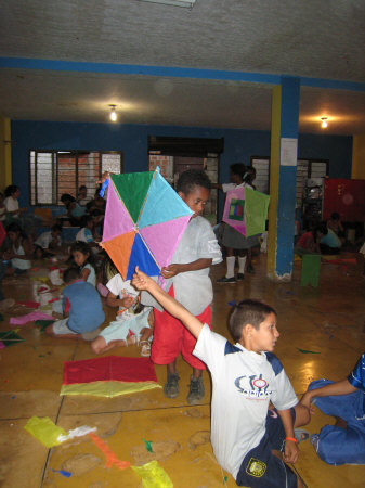 Im von Studenten geführten "Centro Cultural" im Armenviertel "Pueblo Joven" entstehen an diesem Nachmittag über 50 Drachen.
